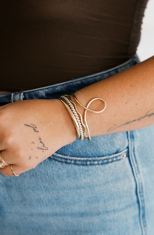 Each of our bracelets is hand-forged and work-hardened to withstand the beauty of everyday wear. Because every piece is crafted by hand, no two are exactly alike - adding to the unique charm and timeless appeal of your jewelry. With proper love and care, your piece will last a lifetime and become a cherished heirloom to pass down through generations. An occasional polish will keep your jewelry as radiant as the day it became yours.